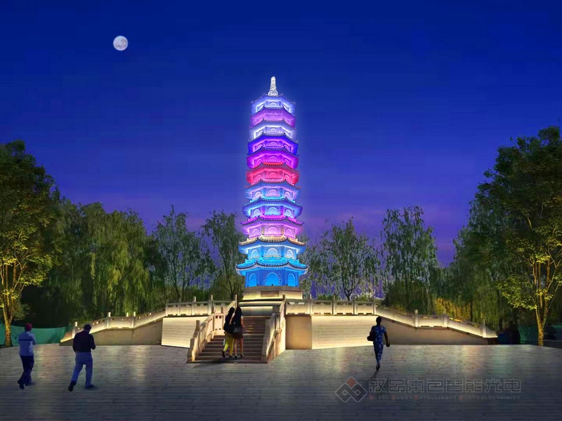 额敏河治理工程纪念塔亮化效果 额敏河治理工程纪念塔亮化工程施工现场 额敏河治理工程纪念塔亮化工程完工实拍
