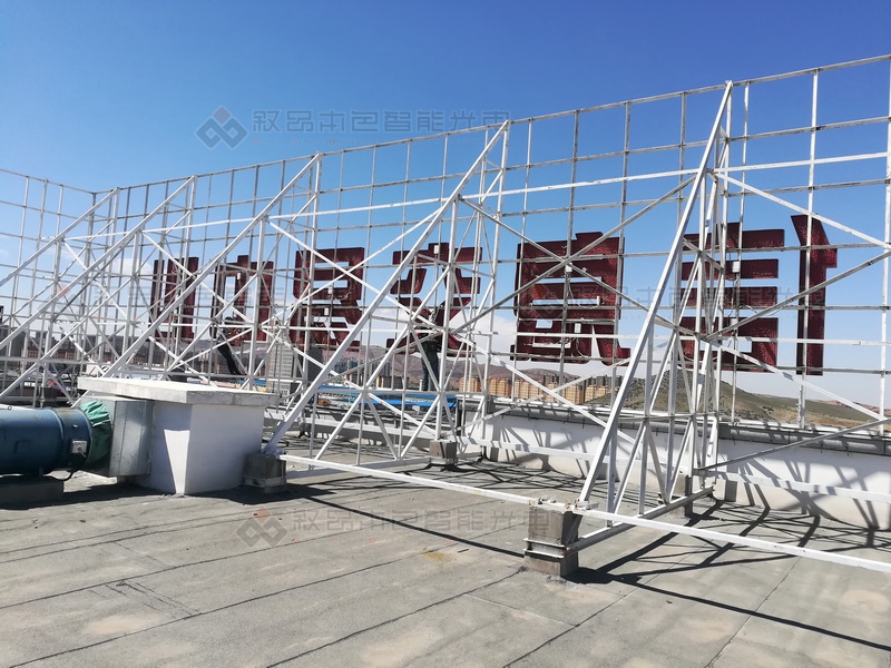 恒汇机电城楼顶钢结构+LED冲孔发光字