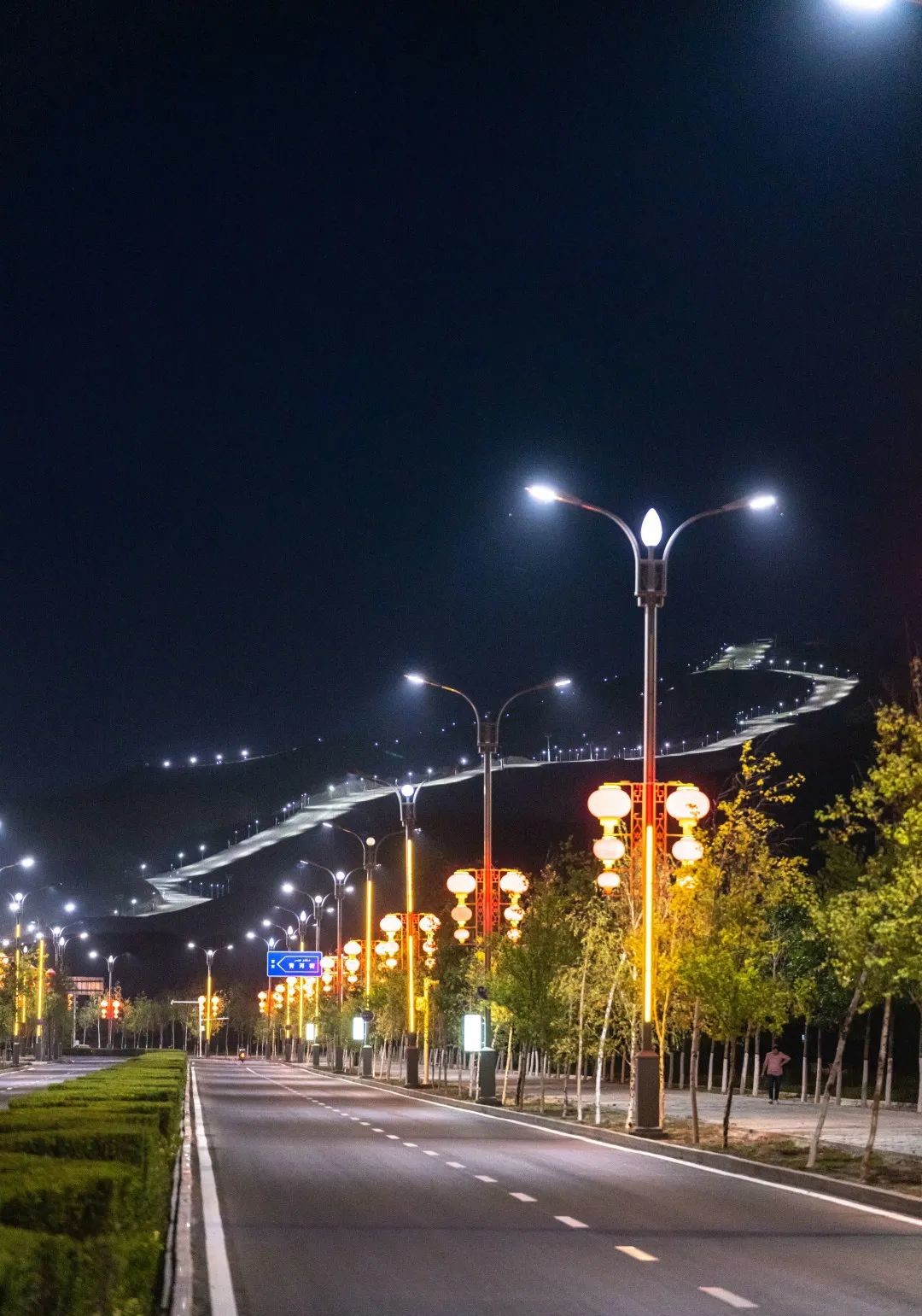 新疆阿勒泰将军山滑雪场银光大道调试亮灯